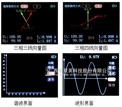 2、2.4寸高分辨率(320*240)真彩色TFT顯示,可顯示電壓和電流真有效值、相位、頻率、功率、功率因數(shù)等電參數(shù),測量結(jié)果以向量圖、幅值、相位、功率等多種方式顯示。