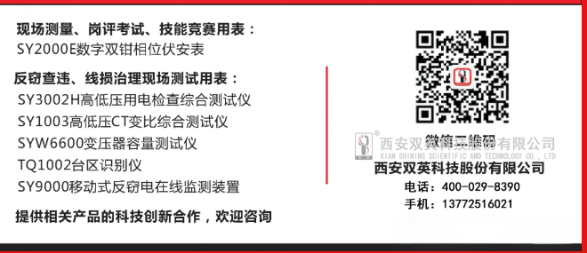 西安雙英科技股份有限公司始于1996年,集產(chǎn)研銷服為一體,是國家級高新技術(shù)企業(yè)、陜西省“專精特新”企業(yè)。公司以國內(nèi)最早的數(shù)字式相位伏安表為基礎(chǔ),現(xiàn)已發(fā)展形成了用于電力二次繼電保護、營銷計量和用電檢查的具有移動互聯(lián)、智能化測量的產(chǎn)品體系。