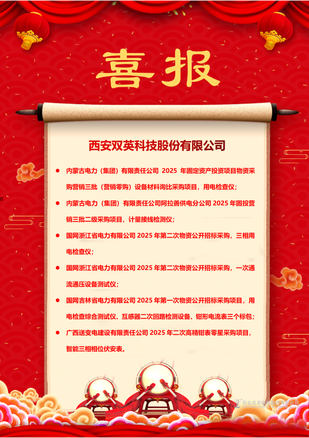 進入5月份以來,各電網(wǎng)項目招標紛紛而至,西安雙英精心組織、精心策劃每一個項目投標,在激烈的競爭中西安雙英憑借良好的產(chǎn)品優(yōu)勢、服務優(yōu)勢、業(yè)績優(yōu)勢、企業(yè)資質(zhì)等綜合能力贏得專家認可,重點投標項目喜訊頻傳,并在多個項目中取得新突破。