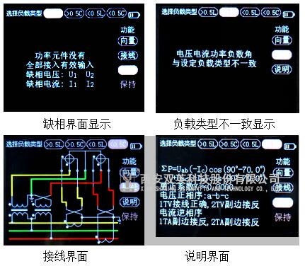5、可實時進行三相三線制 192種接線錯誤判定,可直接顯示功率表達式和錯誤接線圖。