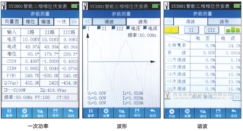 3、可實時顯示三相電壓、電流波形,相位測量為基波相位,抗干擾能力強;
